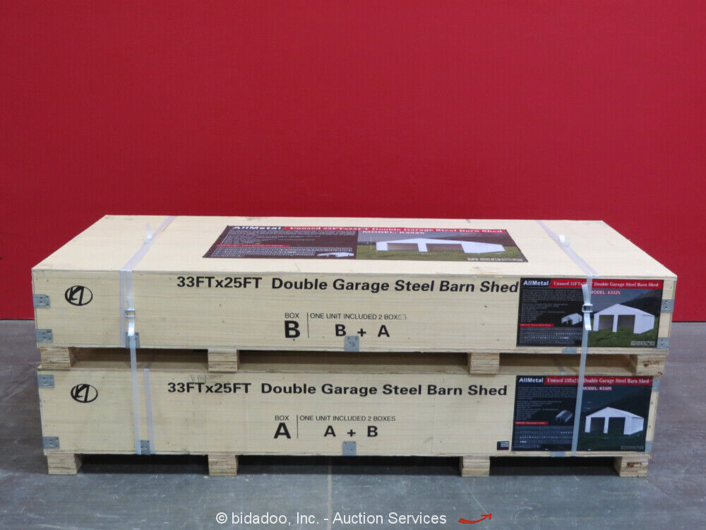 AllMetal K3325 33′ x 25′ Double Garage Steel Shed Metal Building bidadoo -New