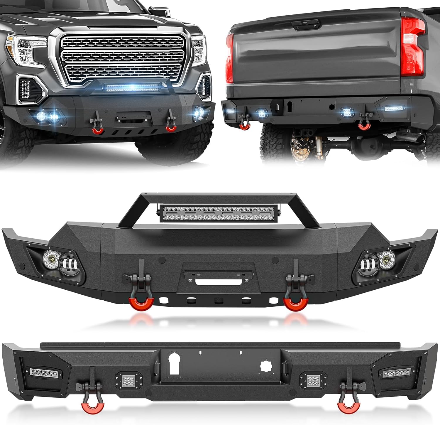 - 【Durable & Stylish】Our front and rear bumpers are meticulously crafted from high-strength steel and coated with a durable black powder finish. They provide excellent defense against rust and maintain reliable performance and aesthetics, even if the coating is damaged.